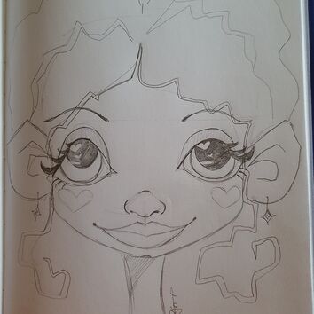 Am Anfang entsteht die Idee im Kopf. Dann nehme ich mir einen Bleistift und fang einfach an zu zeichnen. Einen Kreis für den Kopf. Aus Dreiecken, Kreisen, Vierecken und Strichen entstehen dann alles andere, je nach dem welche Form ich gerade brauche. Wenn dann die Form steht und nach öfteren Radieren und neu zeichnen, die Figur entsteht. Geht es nach einem Foto ans Tablett.